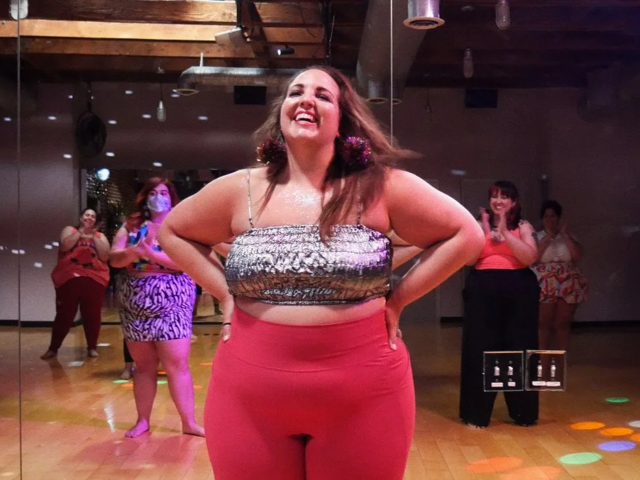 This monthly class is a celebration of fat, thick, round, curvy, plus size bodies in all their glory. This is an intentional space for fat-identified and plus size folks to take up space unapologetically on the dance floor and connect with each other through fat joy and community. The class is 60 minutes of low-impact, follow-along routines in various styles. No experience is needed. Chairs are available for a seated option.